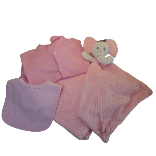Bundles for girl: Waffle blanket+waffle comforter+sleepsuit+bib – pink