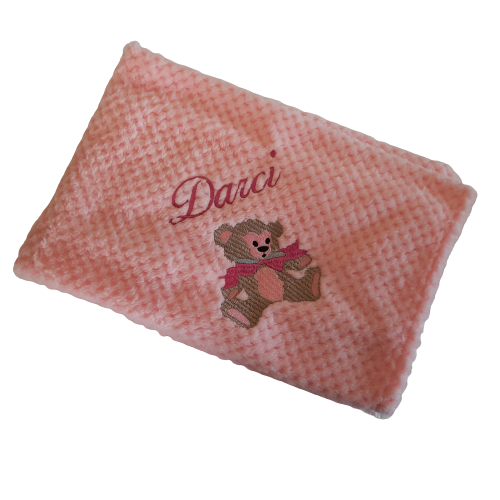 Waffle Blanket – pink personalised in the corner. Embroidery makes an ordinary item into a unique gift.